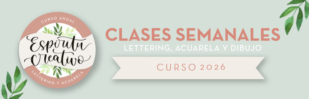 - MATERIAL NECESARIO: necesitarás lápiz, goma, papel de acuarela, pinceles, acuarelas y gouache blanco. Si tienes lápices de colores y rotuladores de Lettering te vendrán genial, pero no son necesarios.